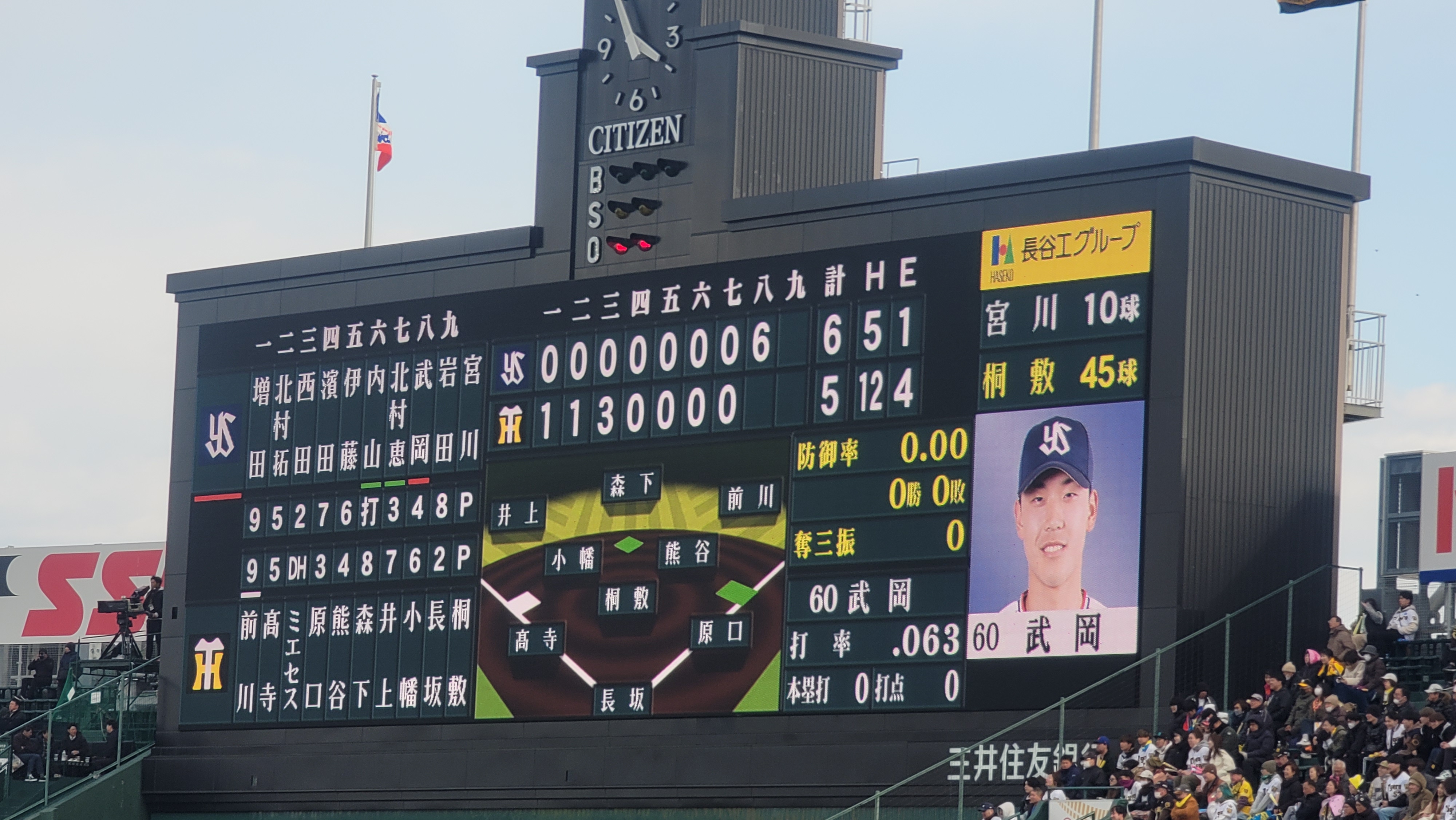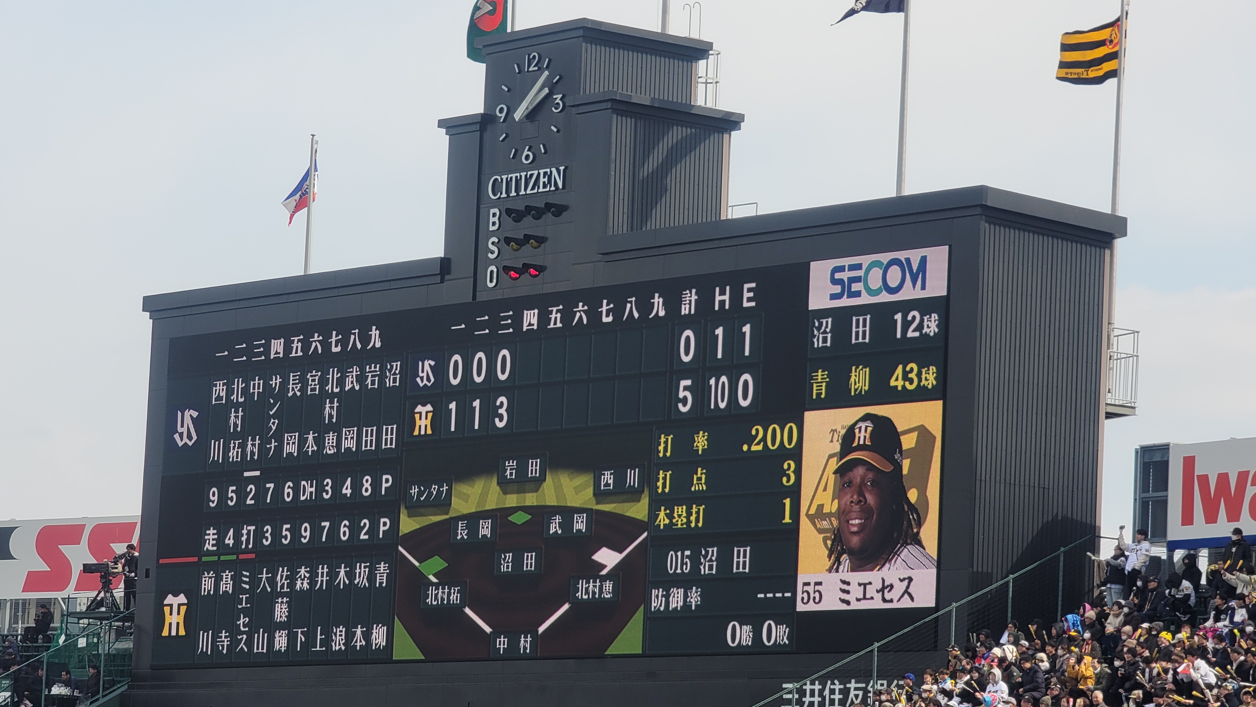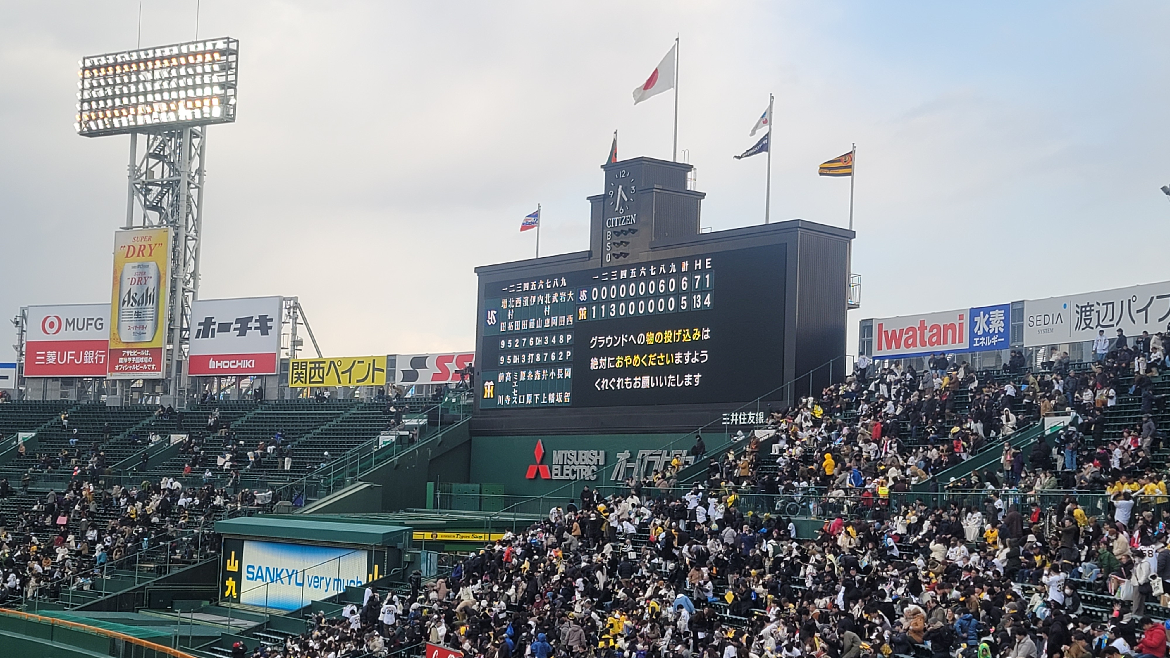 고시엔 구장 전광판 초반에 한신이 점수내서 쉽게 이기겠구나 생각하면서 응원가를 따라부르면서 야구보다가 약속의 8회때 뭔가 이상한 분위기로 바뀌고