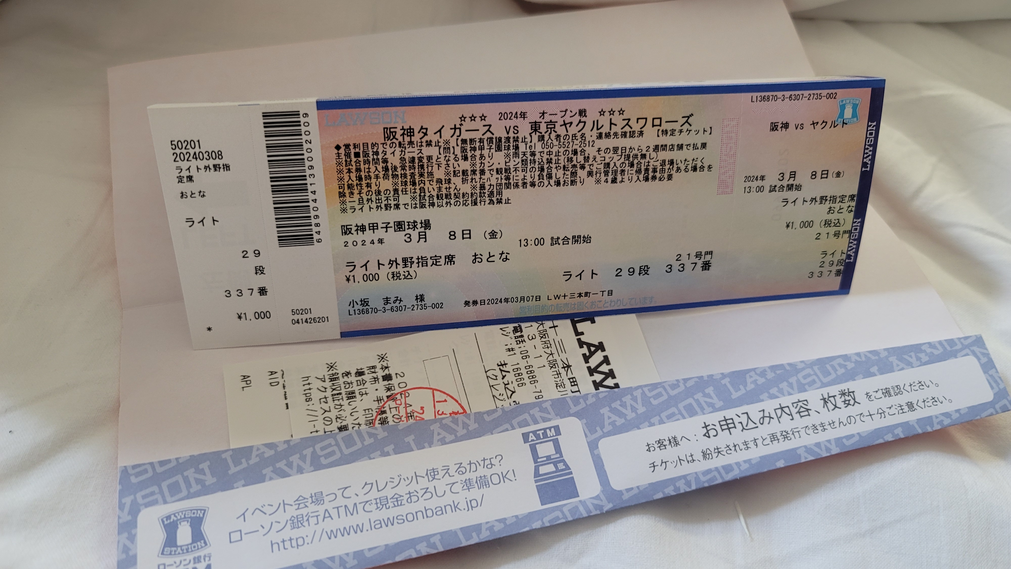 고시엔구장에서 한신타이거즈와야쿠르트의 경기를 보기 위해 로손편의점에서 티켓을 구입하고
