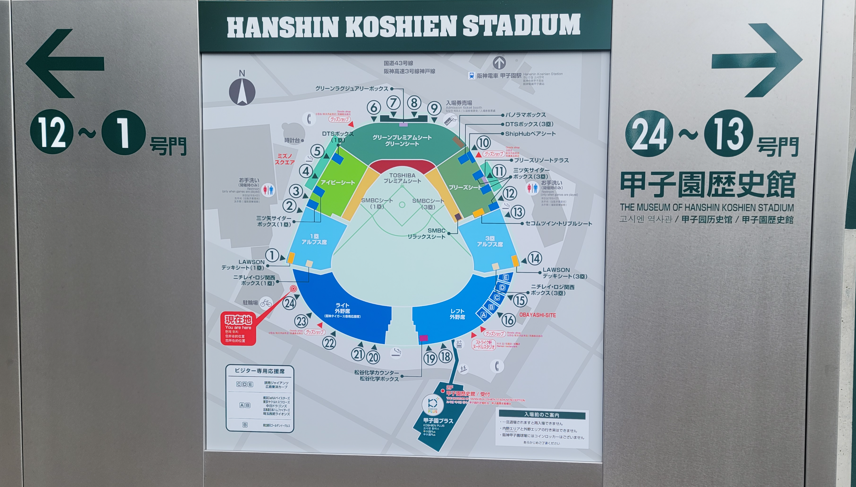 고시엔 구장 좌석 배치도 라이트외야석을 구매했기때문에 가장 끝에있는 출입구로 찾아가서 입장