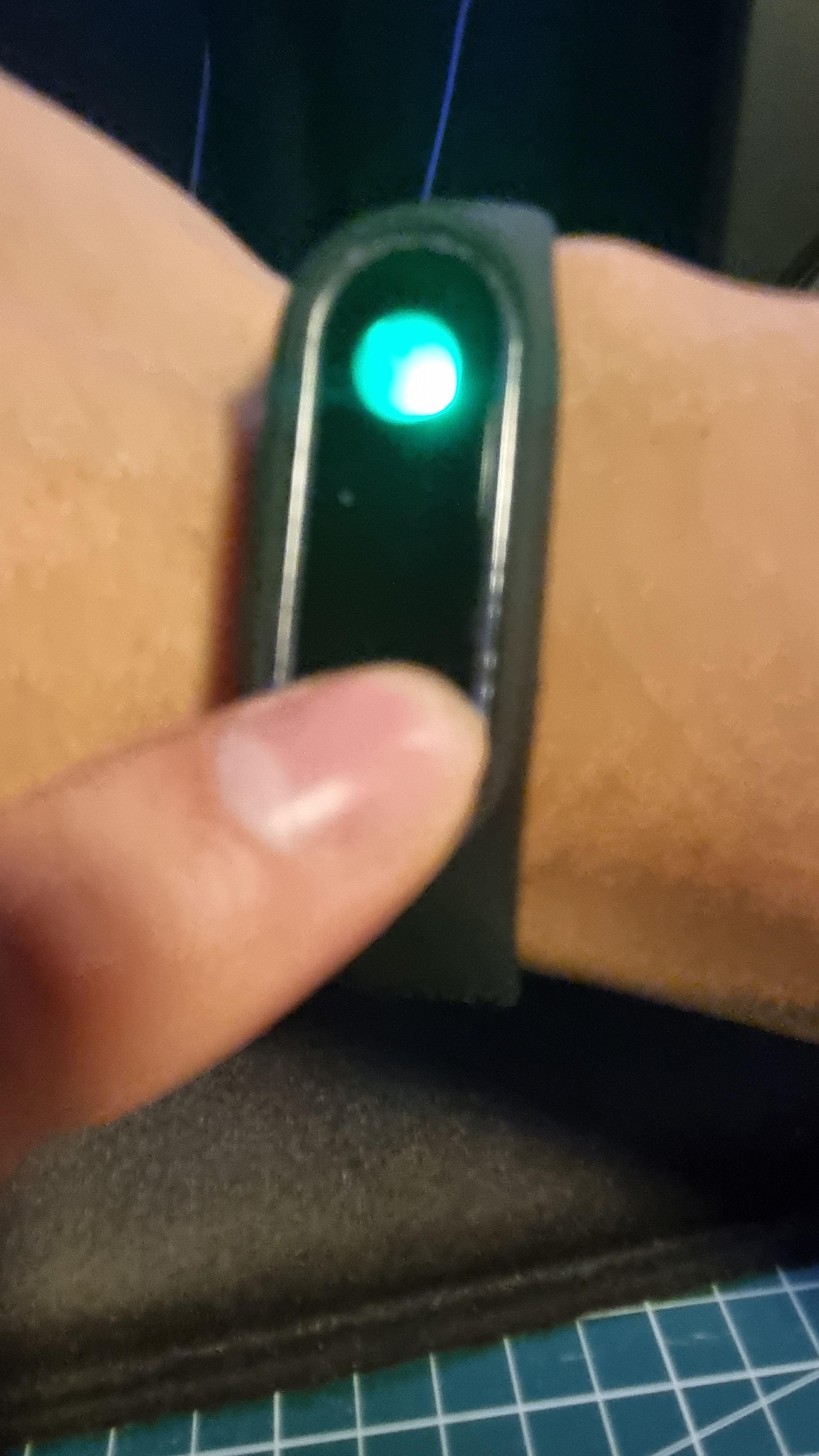 정전기방지 팔찌 버튼을 누르면 초록색으로 불이 들어오고 배터리용량을 확인할수 있는것 같다